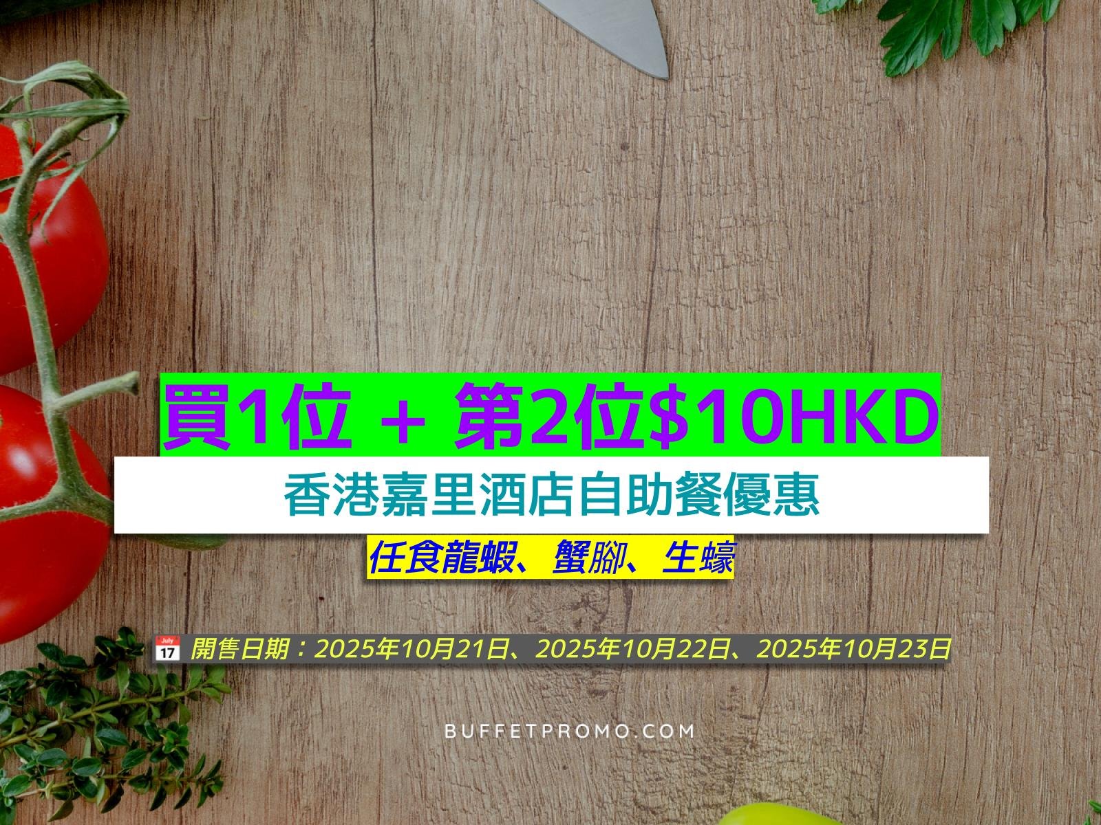 快閃買一送一自助晚餐,主打普慶食為鮮主題,有任食生蠔、蟹腳、麵包蟹、法式焗龍蝦尾同蘋果木煙燻三文魚。最抵人均$441,優惠10月23日9PM開售,適用至11月30日。立即預訂