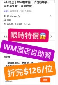【買一送一!每人$359起】西貢WM酒店自助餐優惠(2025年2-4月優惠)